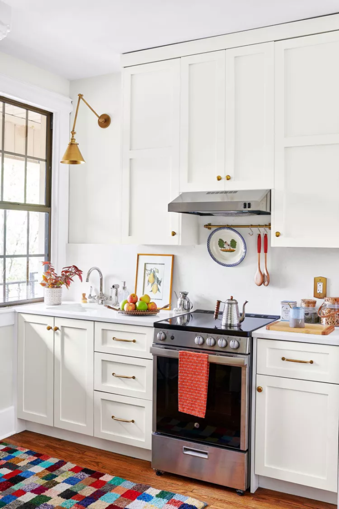 Add warmth and texture to your small kitchen with a floor rug. Choose a washable rug in a size that fits your kitchen layout, and opt for vibrant colors to add visual interest without overcrowding the space.