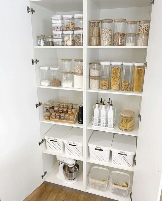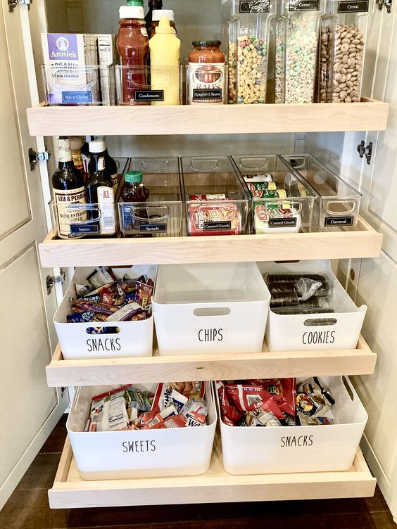 See-through buckets are an excellent choice for organizing your pantry. They offer clear visibility of contents, making it easy to find what you need. Labeling these buckets helps further streamline your pantry organization and ensures that everything is easy to locate.