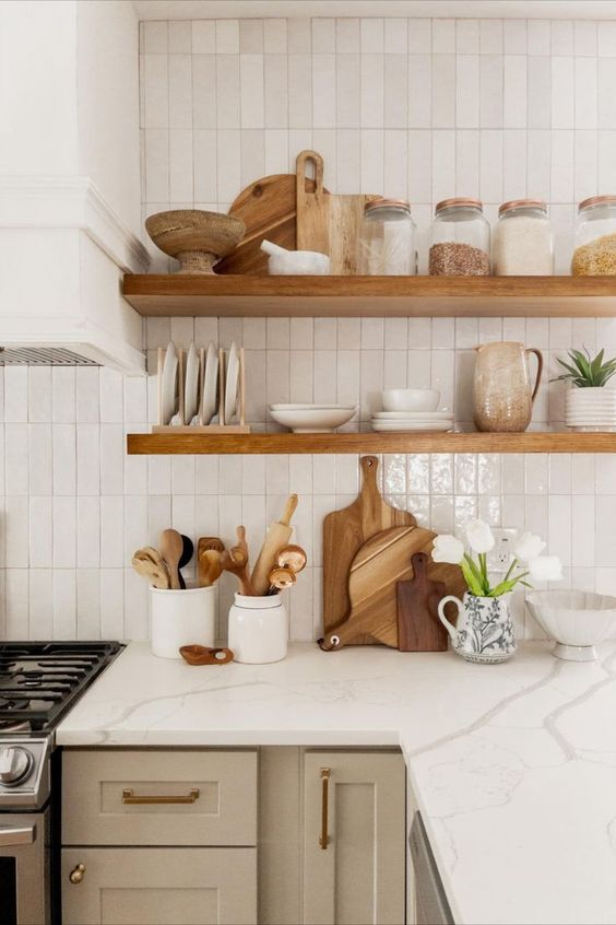 Floating shelves add both style and functionality to your kitchen. They provide additional storage while allowing you to display decorative items. These shelves enhance the visual appeal of your kitchen and make it easier to store and access everyday items.