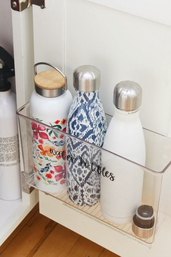 A water bottle organizer is perfect for managing multiple water bottles. It keeps them neatly arranged and easily accessible, ensuring you can quickly find the bottle you need. This organizer helps maintain order in your kitchen and pantry.