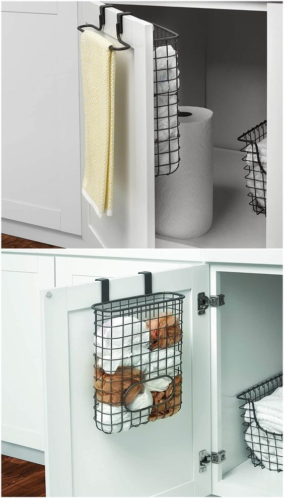 A hanging organizer is an efficient solution for maximizing cabinet space. By hanging it on the inside of the cabinet door, you keep the interior of the cabinet clear for other items. This approach utilizes vertical space, ensuring the cabinet remains organized and accessible.