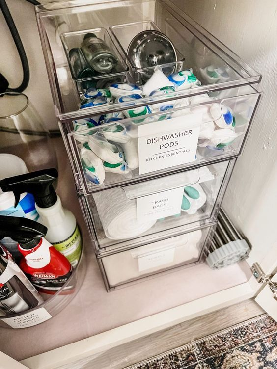Clear bins are a great addition to any cabinet. They provide visibility of contents, making it easy to find items quickly. These bins are durable and help keep your cabinet organized and clutter-free.