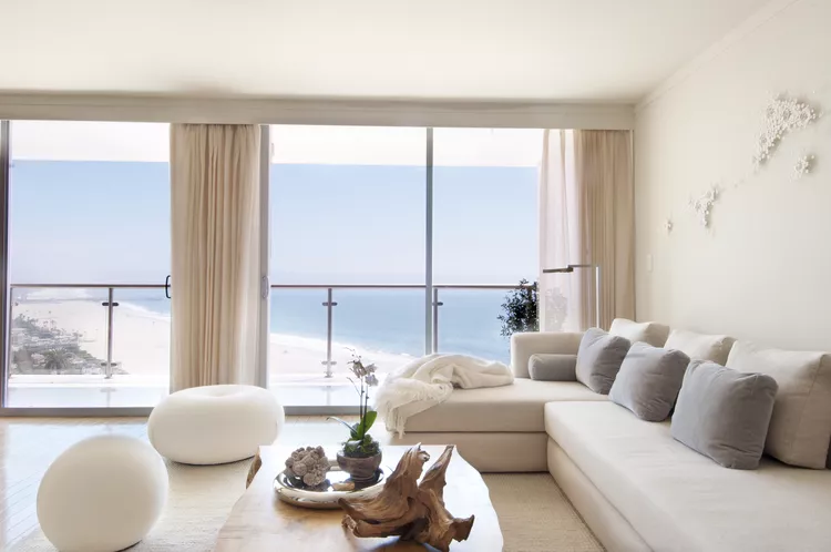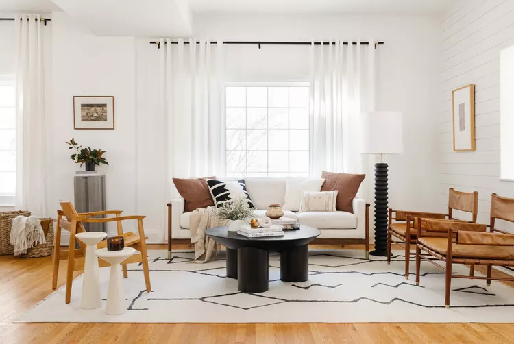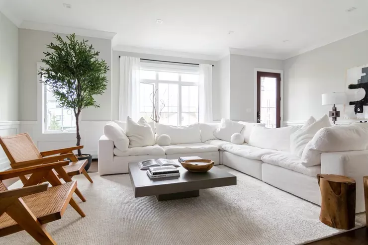 For a crisp, clean aesthetic, opt for an all-white interior. This approach, illustrated by Alvin Wayne’s design, uses primarily white decor and furniture, accented with natural wood and greenery to create a serene and polished look.