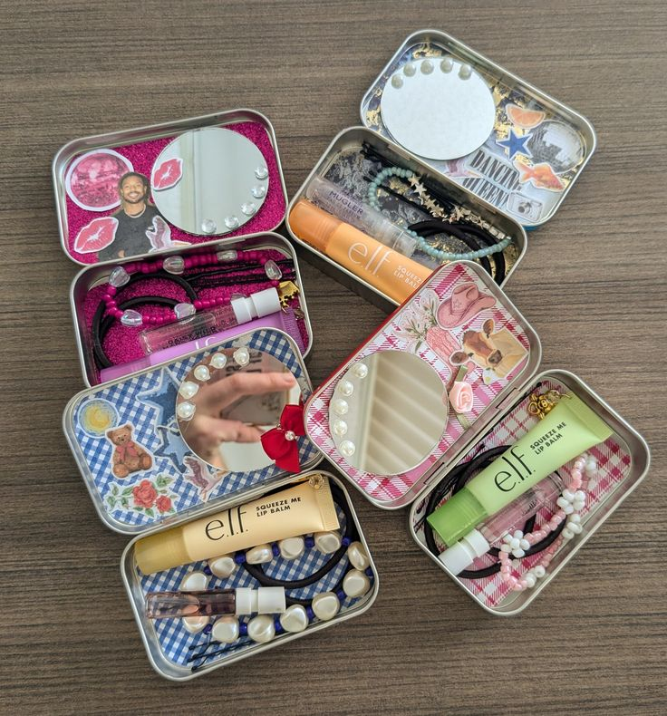 Transform your tin into a handy beauty container. Use it to store lip gloss, balms, or small makeup essentials. Add a mirror to the lid for extra convenience.