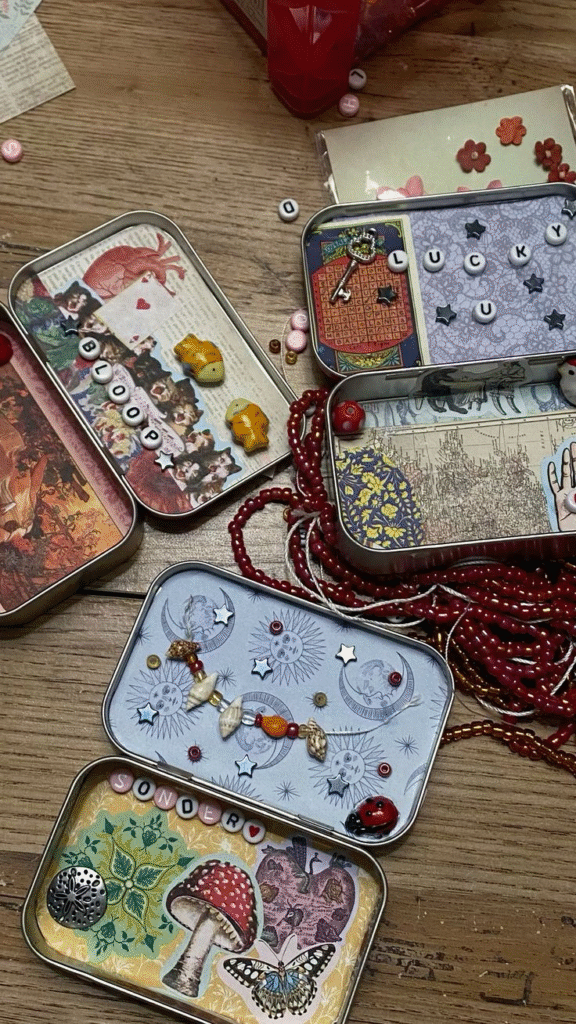 Design a calming tin filled with items that help you relax. Add small crystals, essential oil pads, or even inspirational notes. It’s like carrying a pocket-sized relaxation kit.