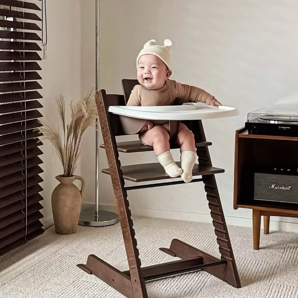 This baby chair draws inspiration from classic furniture design, featuring a wooden frame and a silhouette that feels enduring rather than trendy. It carries a quiet charm that makes it feel like a piece meant to last, not just for one stage of life. The craftsmanship-inspired look gives it an almost heirloom quality, blending sentiment with function. Rather than standing out as baby gear, it feels like a beautiful piece of furniture that naturally belongs at the table, adding warmth and history to the space.