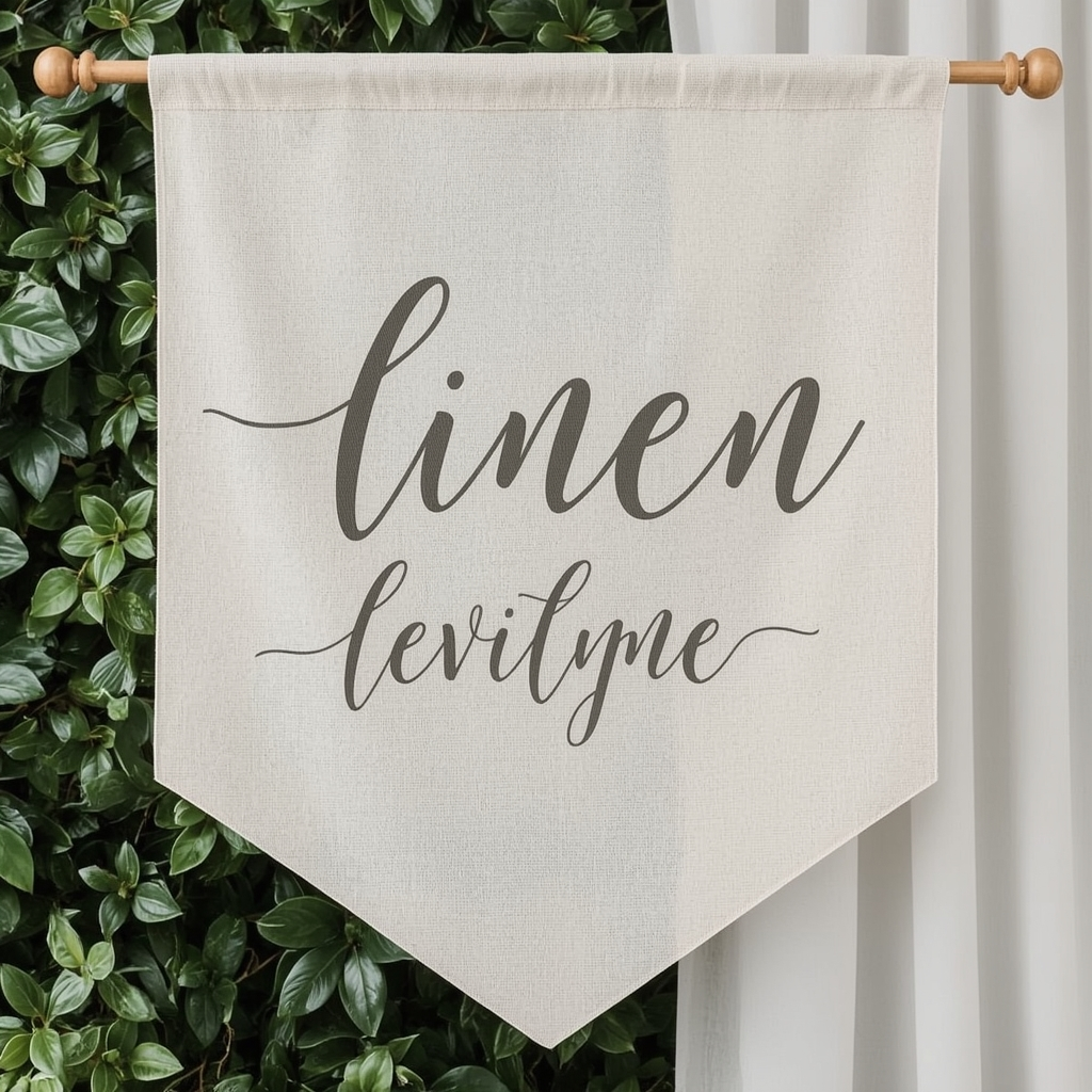 A linen banner with flowing script offers a soft, elevated look. The natural texture of linen adds depth, while handwritten-style lettering feels personal and inviting.