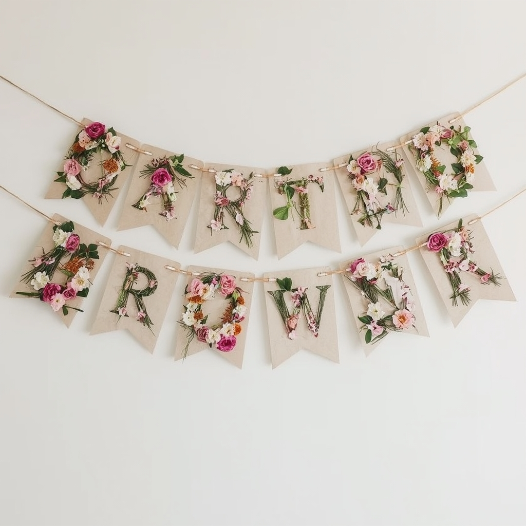 Use small triangular or flag-shaped pennants strung together to spell the message. Each pennant can include a letter, pattern, or tiny icon.