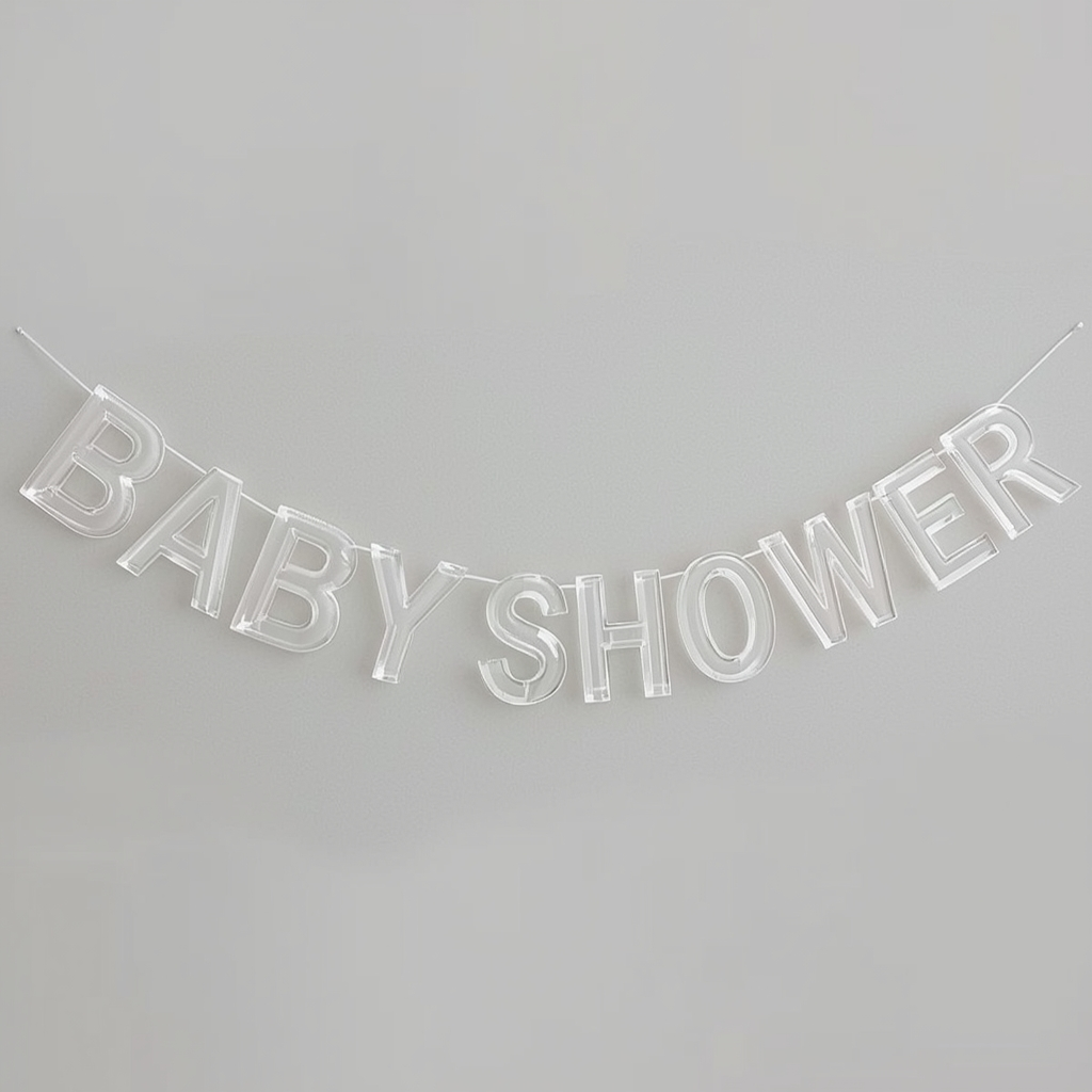 Perfect for contemporary or neutral-themed baby showers, acrylic banners are reusable, polished, and pair well with balloons, florals, or simple backdrops.