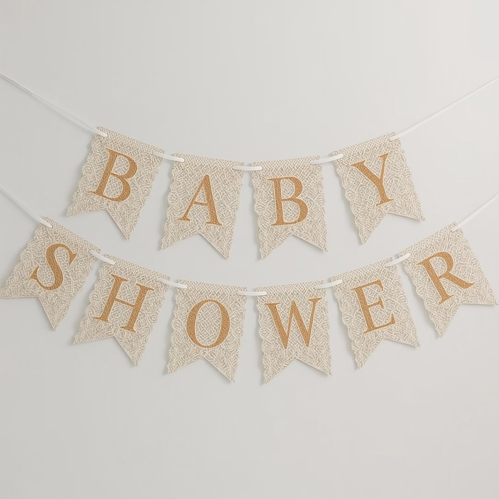 Perfect for classic or vintage-inspired baby showers, this banner complements neutral or pastel color palettes and feels delicate yet sophisticated.