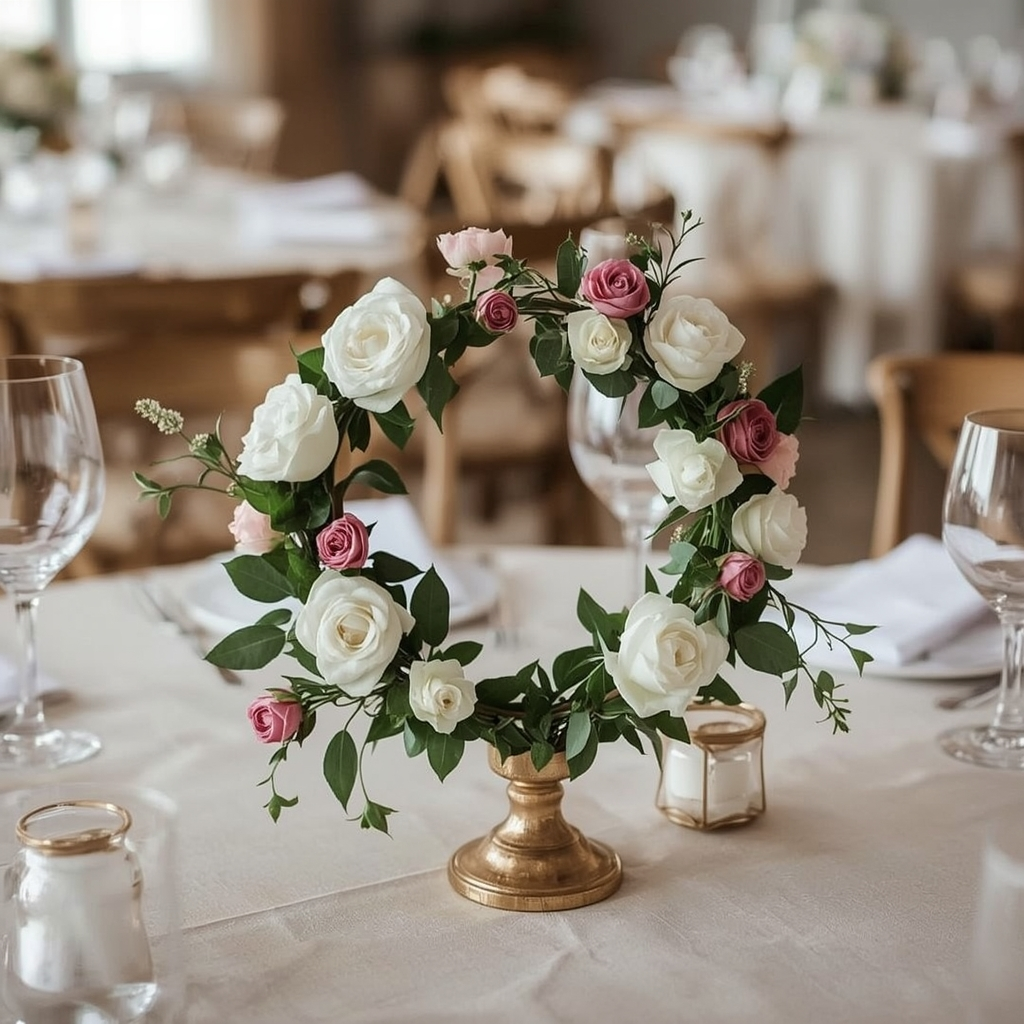 Floral hoops provide structure and elegance without feeling heavy, making them ideal for intimate baby showers or minimalist setups. They’re lightweight, versatile, and instantly elevate the table’s visual appeal.
