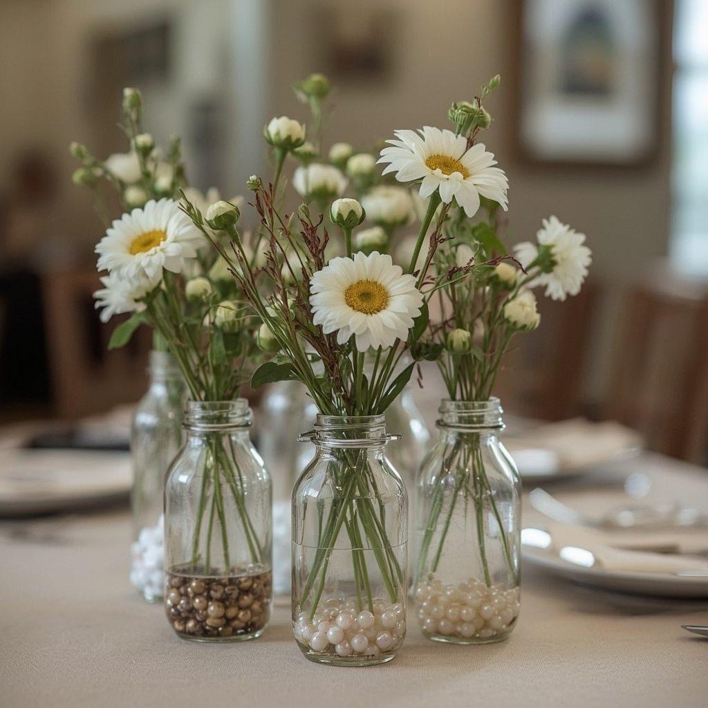 Decorate tables with clear or frosted baby bottles filled with fresh flowers, dried stems, or pastel beads. Space them evenly to maintain balance and visual appeal.