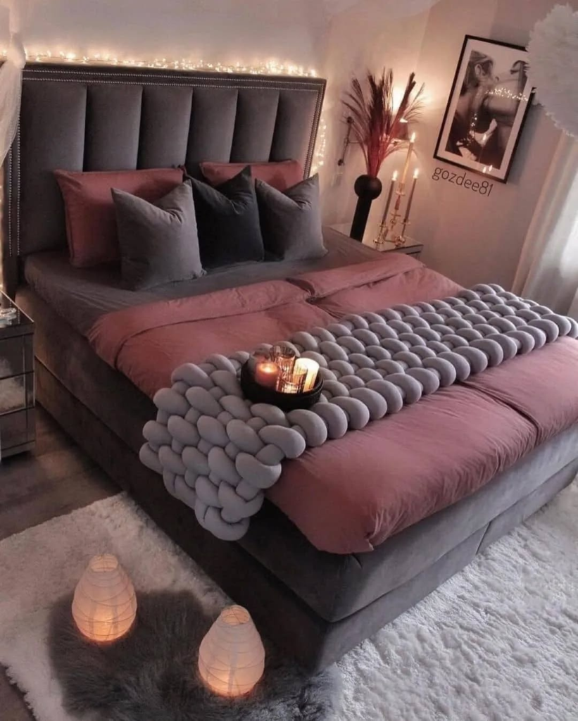 This space blends sophistication with comfort in subtle, luxurious ways. Deep gray hues mix with muted blush tones to create a serene atmosphere. A plush bed anchors the room, while soft candlelight and subtle fairy lights add quiet drama. The ambiance invites slow evenings, mindfulness, and self-care, with each element thoughtfully chosen to enhance calm and confidence. It’s a grown-up, refined baddie bedroom that balances elegance with a sense of coziness, proving that luxury doesn’t have to be flashy—it can be quietly powerful.