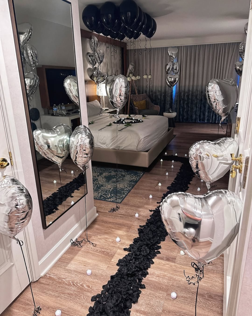 This bedroom makes a statement with bold, theatrical elegance. Black and silver accents, complemented by candles and reflective surfaces, turn the room into an immersive experience. It feels as though every element has been curated for a special, unforgettable night. The dramatic styling gives it a luxurious, romantic edge, perfect for someone who wants their personal space to feel celebratory and elevated. This is baddie energy at its most glamorous, with every detail contributing to an unforgettable mood.