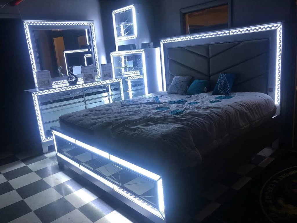 This bold bedroom features striking LED lighting that turns the bed and surrounding areas into a statement display. The high-impact design creates a futuristic vibe that transforms the space from a simple bedroom into an experiential environment. It’s perfect for someone who wants their personal space to feel dynamic and energetic, embracing daring style choices without compromise. This is baddie energy amplified through color, light, and modern design.