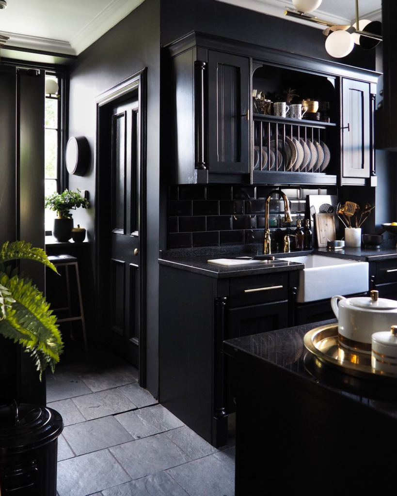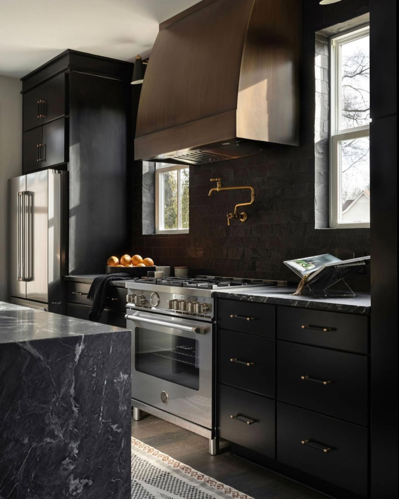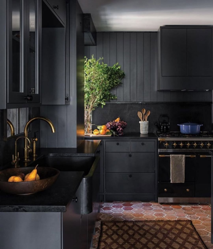 This final kitchen embraces drama through layered dark tones, softened by lived-in details and natural textures. The palette feels expressive rather than severe, enriched by small moments of warmth and personality. The design celebrates imperfection and authenticity, creating a space that feels emotional and inviting. It’s a kitchen that balances bold design with human touch, resulting in an environment that feels both striking and deeply comfortable.