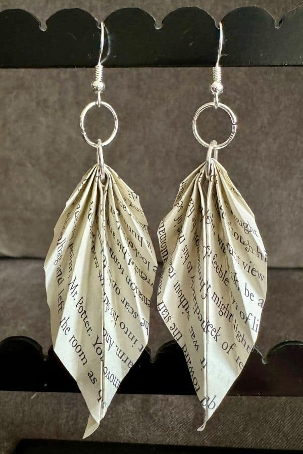 Tiny leaves crafted from book pages create whimsical, literary-inspired earrings. Perfect for book lovers who want a stylish accessory with a story, each piece moves gracefully and adds intellectual charm to any outfit.