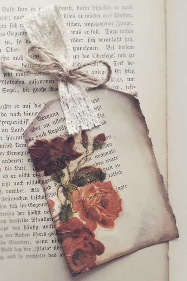 Vintage bookmarks made from book pages combine practicality and elegance. Faded text, floral motifs, and twine accents create a tactile, nostalgic piece perfect for any reader.