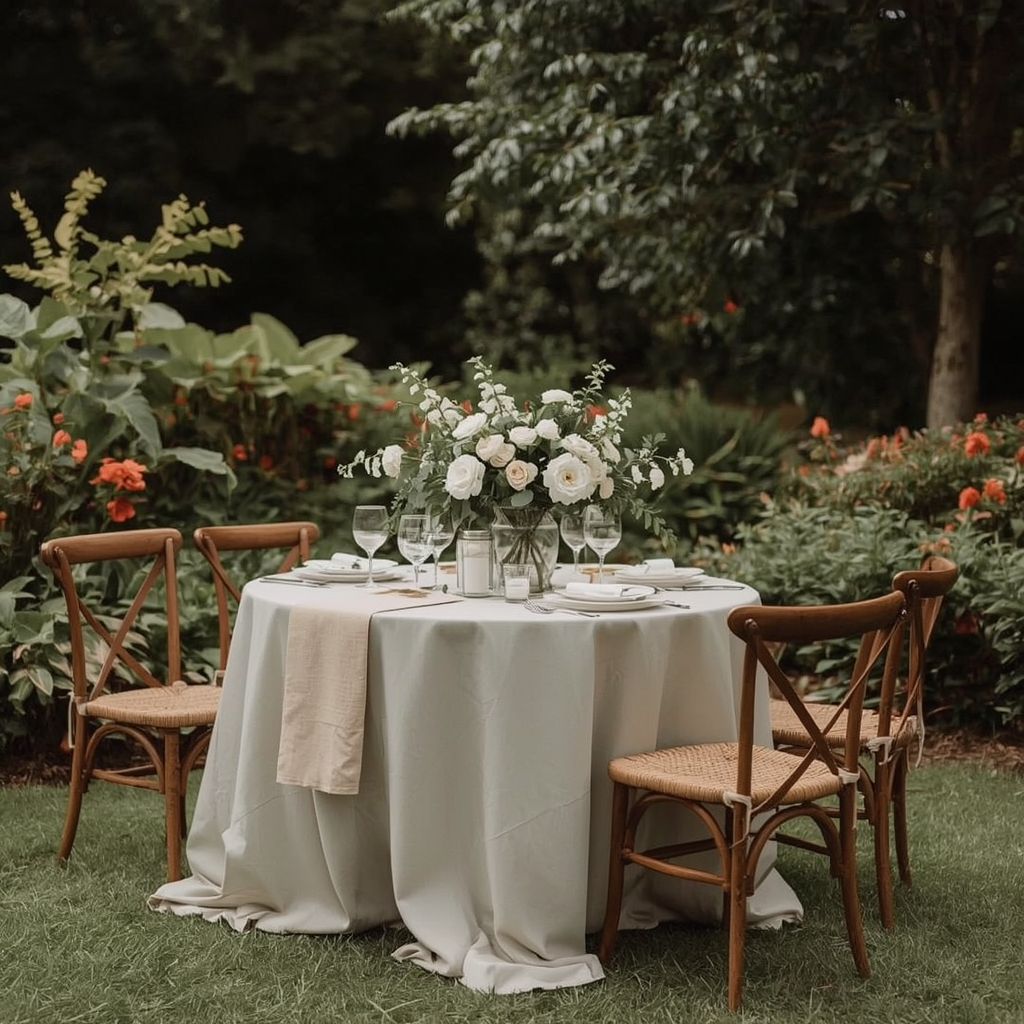 This concept works especially well in spring or summer. The combination of greenery, florals, and fresh air creates a relaxed yet elegant setting that feels thoughtful and inviting.