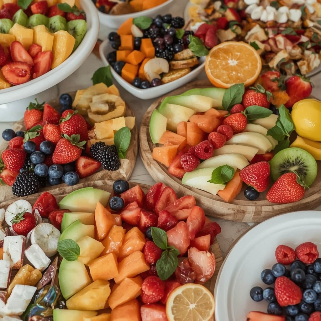 Use white platters or wooden boards to let the fruit stand out. Arrange items thoughtfully to create a visually pleasing spread. Fresh mint leaves can add a finishing touch.