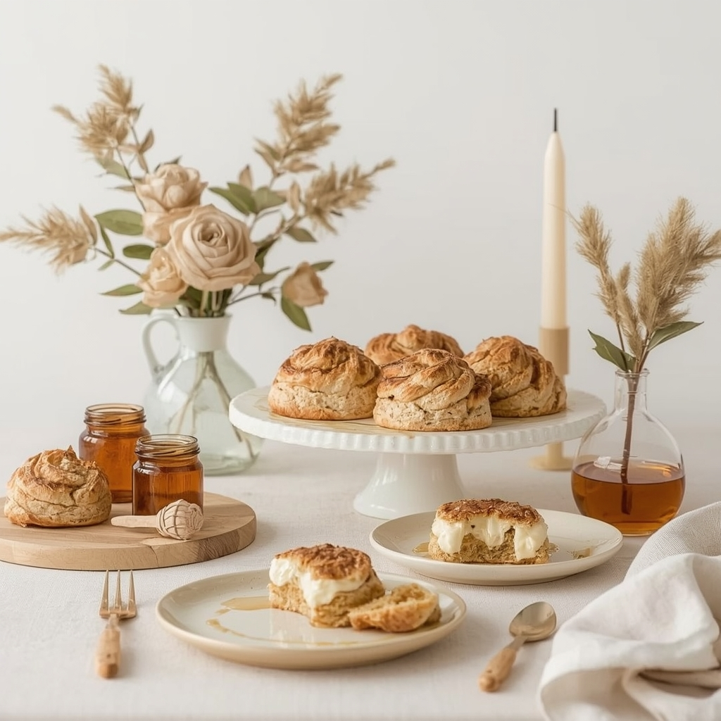 Design the brunch around a gentle honey motif using warm neutrals and subtle gold accents. Serve honey-drizzled pastries, yogurt, and tea to tie the theme together.
