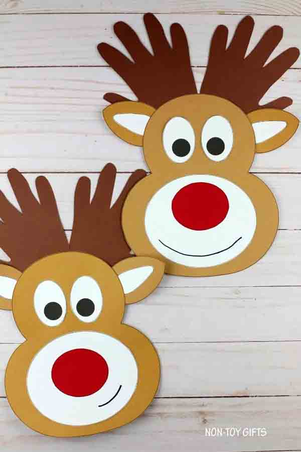 Here’s a clever twist on the reindeer craft—using handprints for the antlers! Trace your child’s hands on paper or use the provided template, then attach them to create the antlers. It’s a wonderful keepsake and a fun way to capture your child’s growth each year.