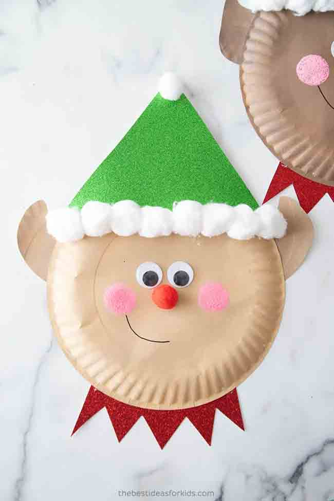 No Christmas craft lineup is complete without Santa’s little helper! This paper elf is simple to make and full of holiday spirit. All you need is a paper plate and colored card for the elf’s face and features.