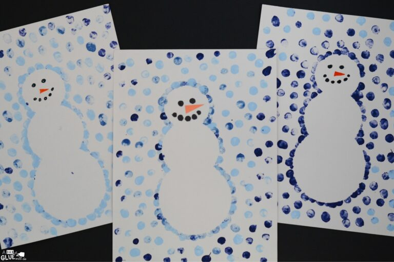 Finish your crafting spree with this hands-on thumbprint snowman! Kids can use their thumbs to make snowy prints, creating the snowman’s body.