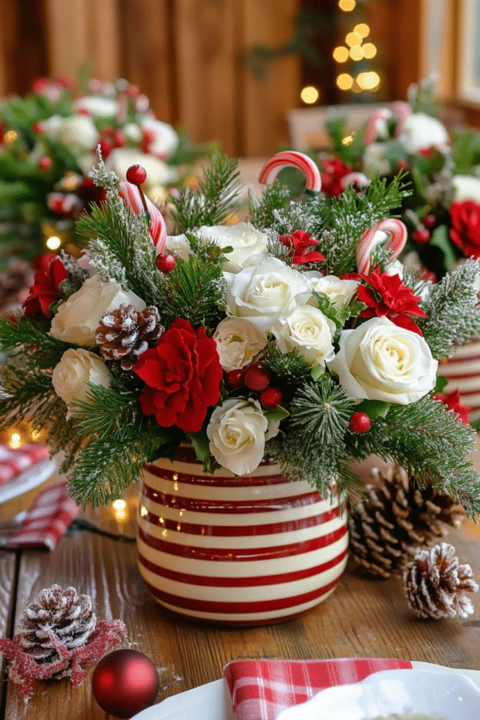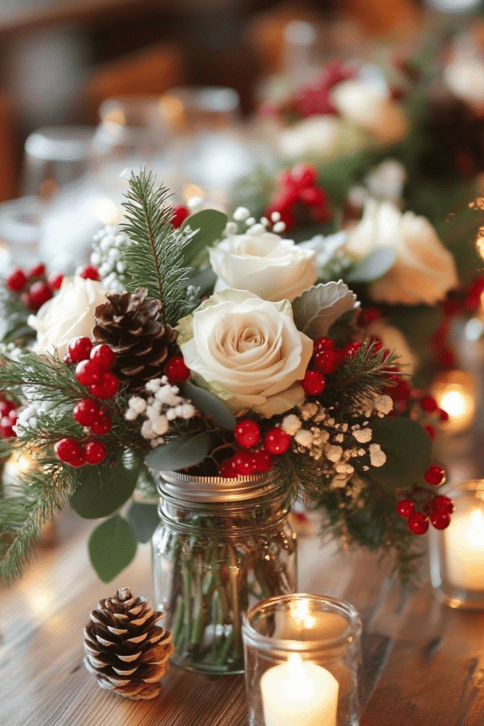 A sweet and uplifting floral arrangement can completely shift the mood of your décor. This idea blends gentle colors and soft textures that feel welcoming from the moment they’re placed. It’s a wonderful option for enhancing the warm, joyful spirit of the holidays and works well in both small and large spaces.