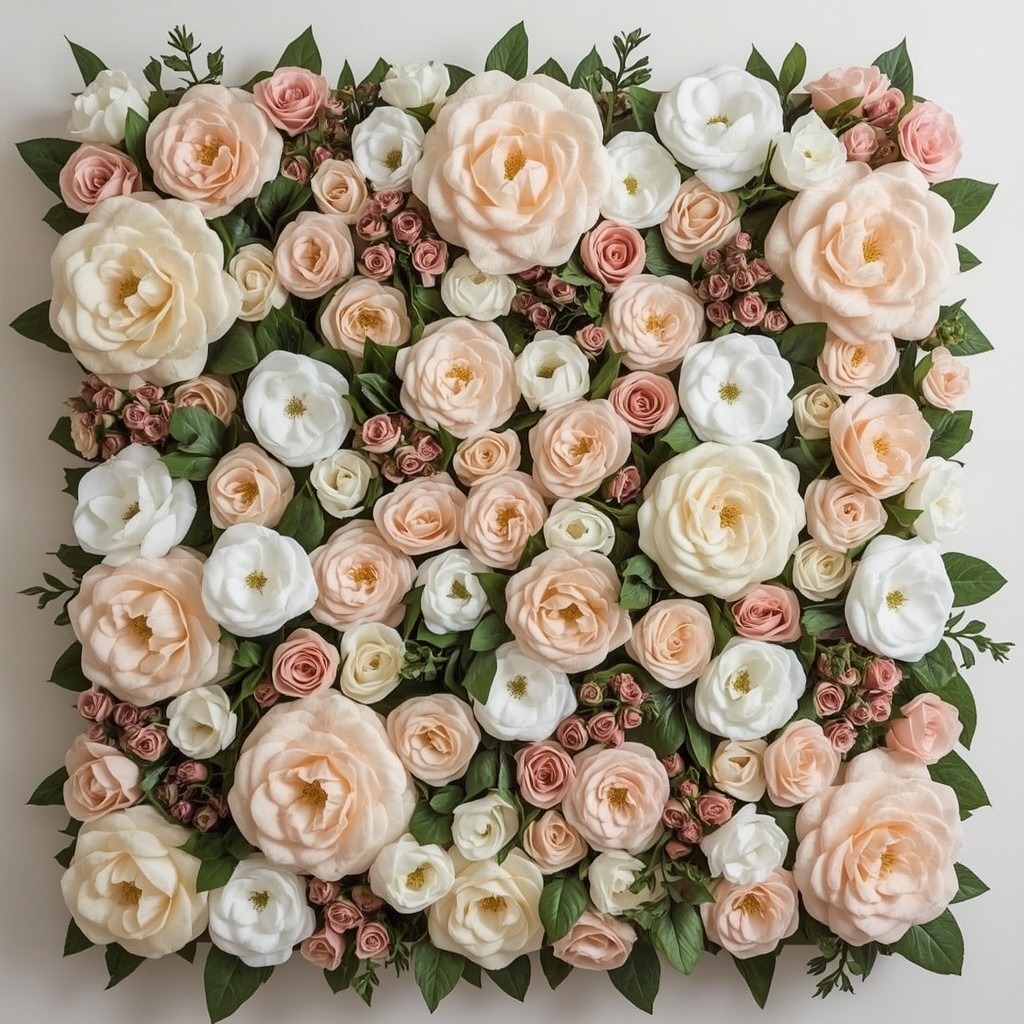 Panel-based flower walls offer structure and stability, making them ideal for larger displays. Flowers and foliage are attached to panels that can be secured in place safely.