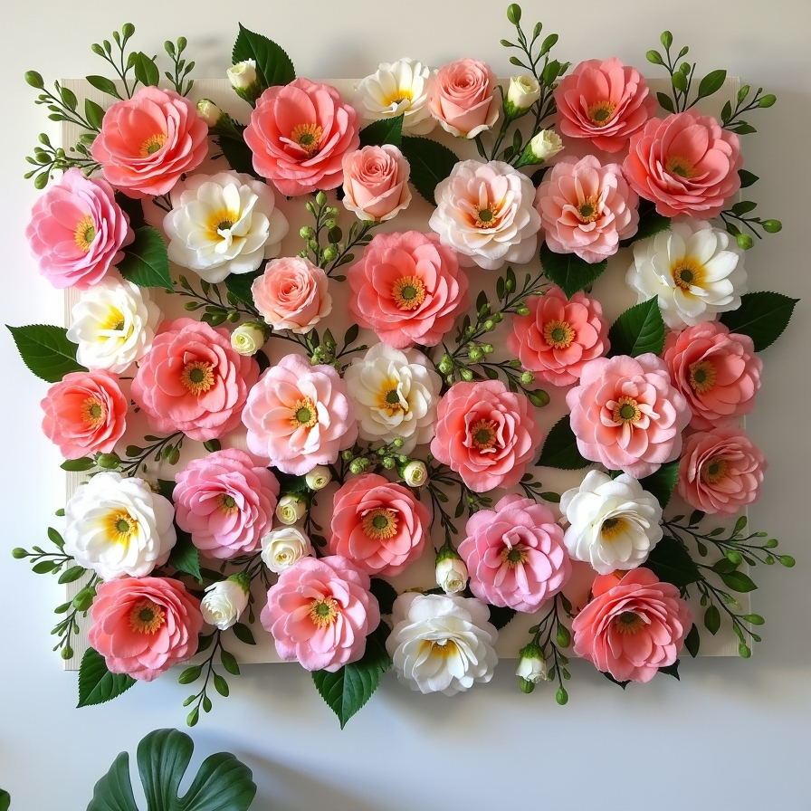 Once assembled, the flowers are mounted securely to create a cohesive wall display. This option is lightweight, budget-friendly, and highly customizable.