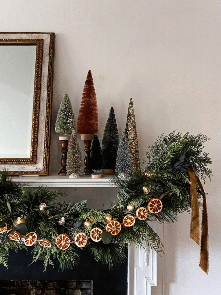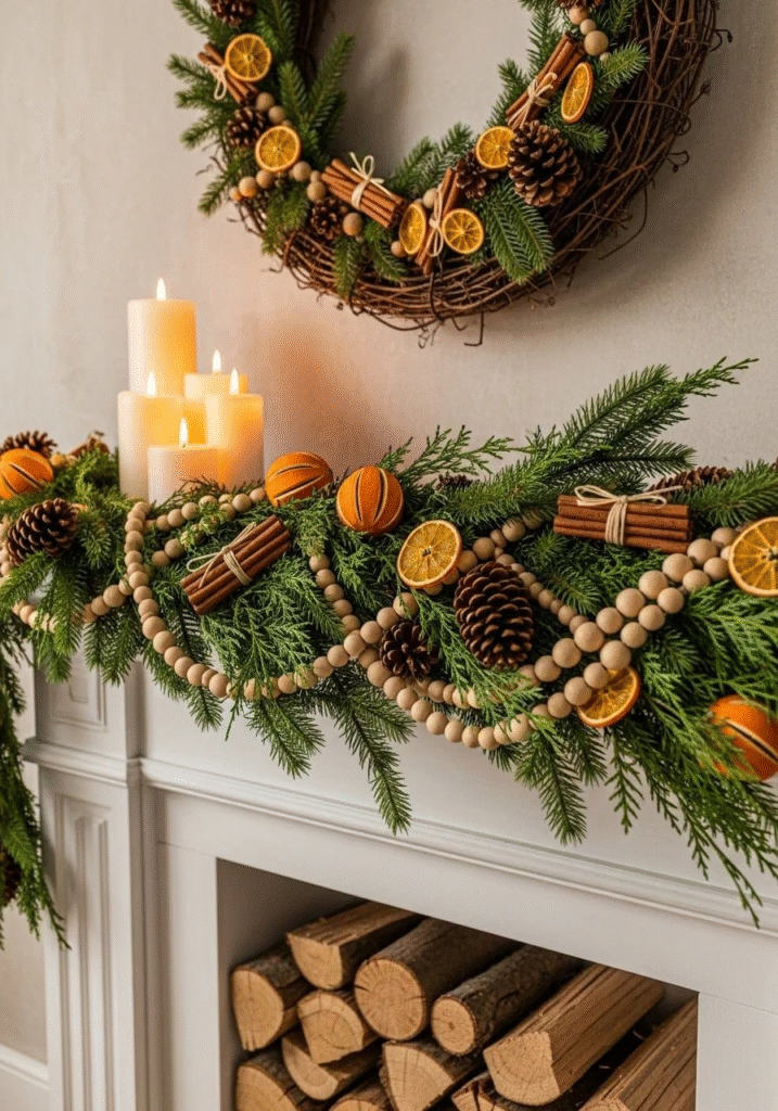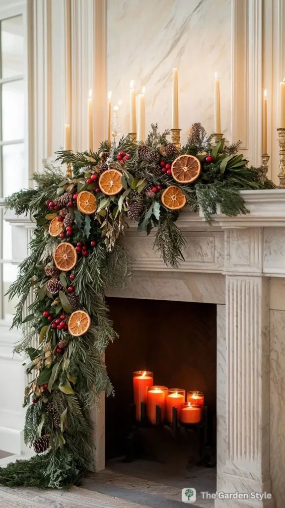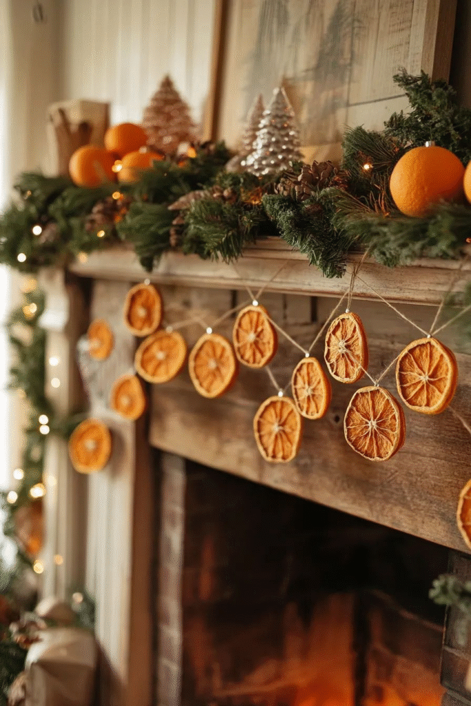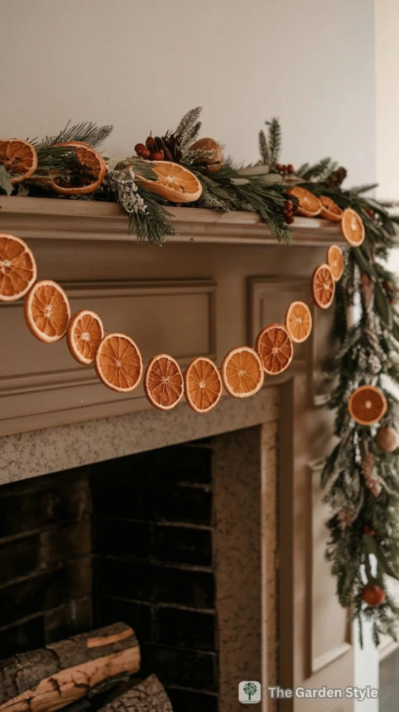 If you want something inviting and warm, this cozy garland delivers. The dried orange slices give it a soft glow that feels perfect for the season. It’s simple, charming, and instantly elevates the atmosphere of any room.