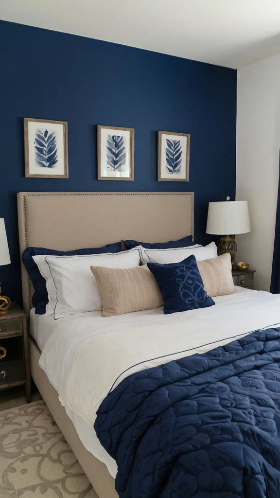 Timeless and polished, navy blue and white create a crisp, classic look. Navy brings depth, while white keeps the space bright. Think navy comforters, white curtains, and coordinating accessories for a clean, preppy vibe.