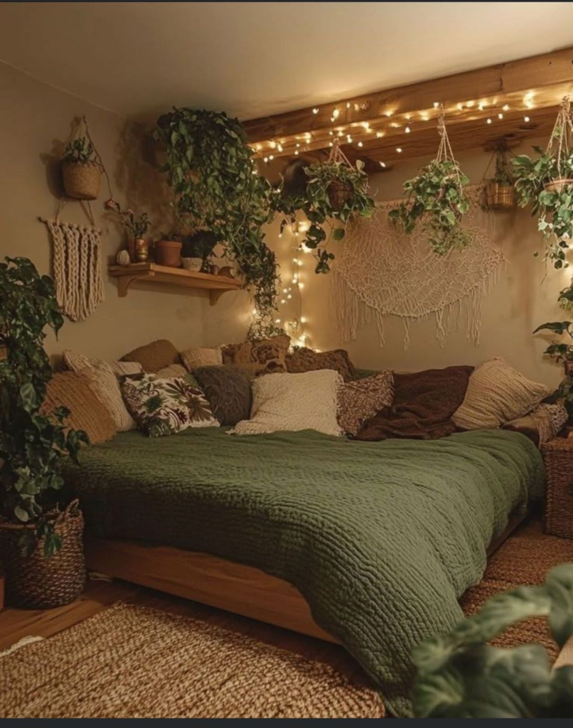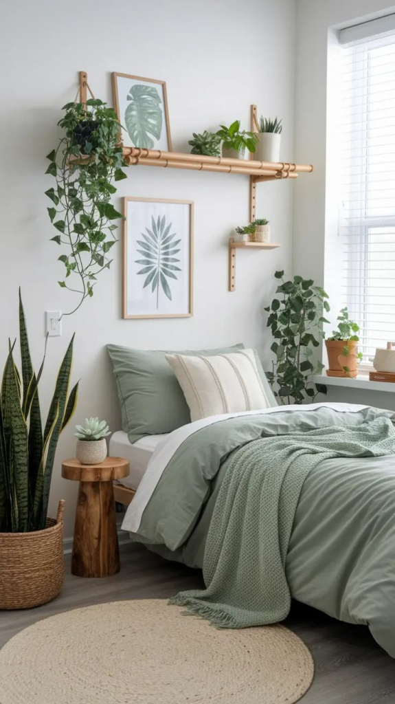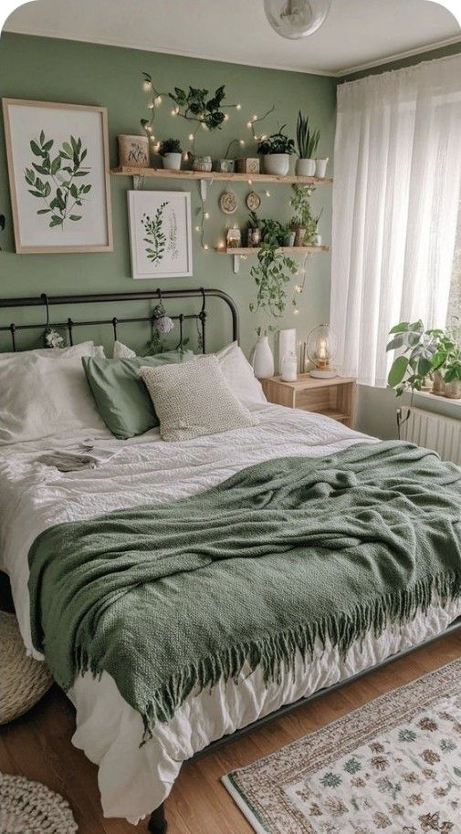 Calm and nature-inspired, this color combo is perfect for a relaxed atmosphere. Sage green paired with creamy neutrals creates a soothing, earthy feel that works beautifully for both walls and bedding.