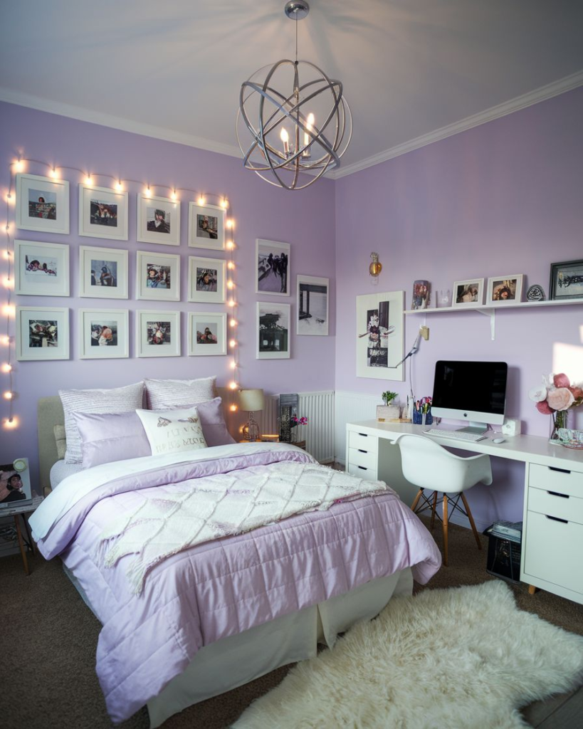 Light, airy, and modern, lilac offers a soft hint of color without overpowering the space. When paired with white furniture or bedding, it creates a dreamy and refreshing dorm aesthetic.