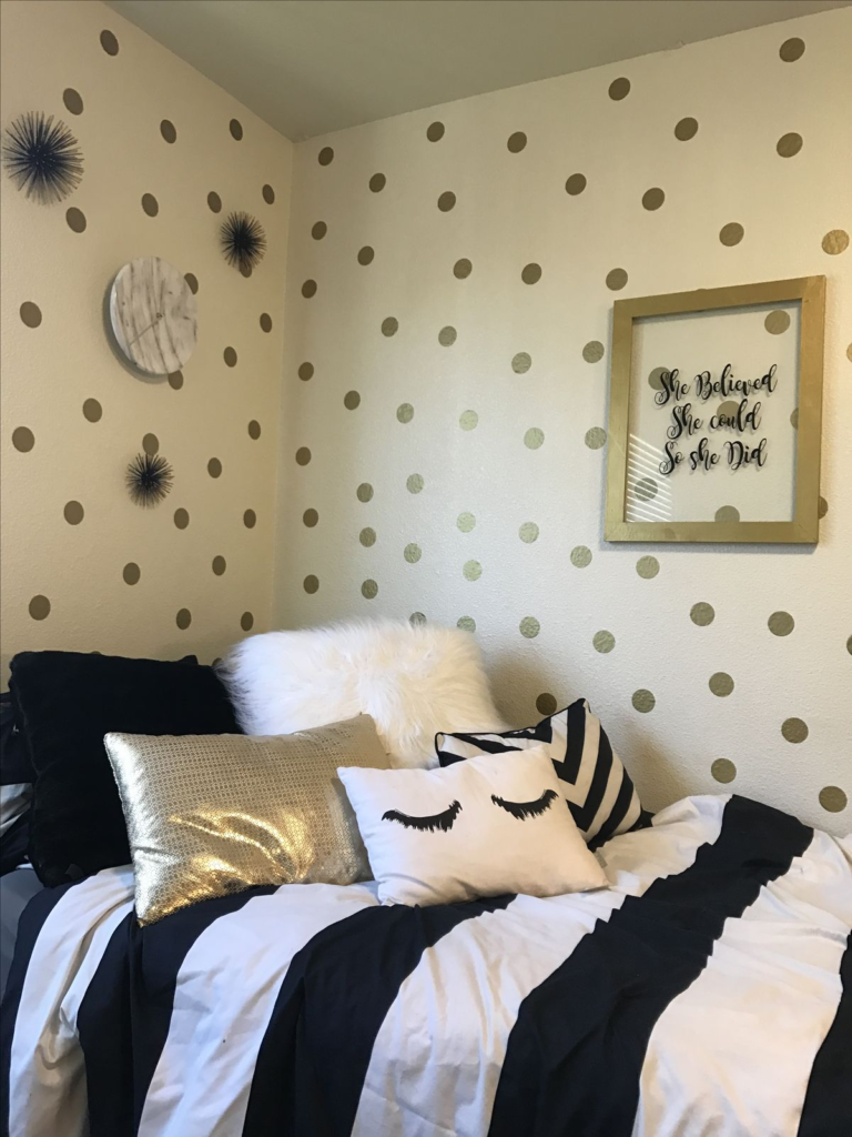 Luxurious and dramatic, plum brings depth and richness. Gold accents brighten the space and add a glamorous touch, perfect for an elevated dorm look.