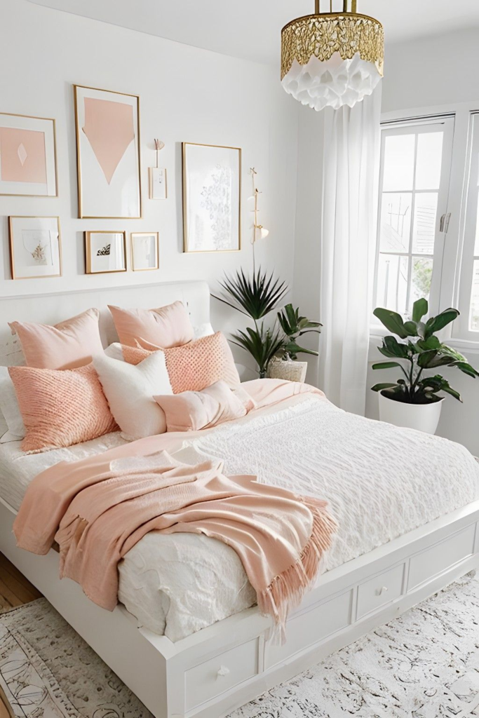 Elegant and understated, soft pink adds charm while taupe keeps the palette neutral. Layering plush textures enhances the cozy, grown-up feel.