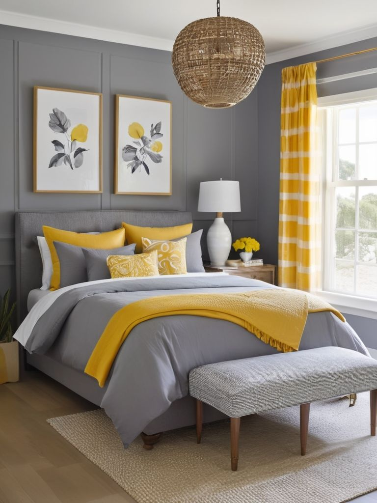 Cheerful yet subtle, pale yellow adds warmth and positivity. Grey tones ground the look, creating a happy but balanced color scheme.