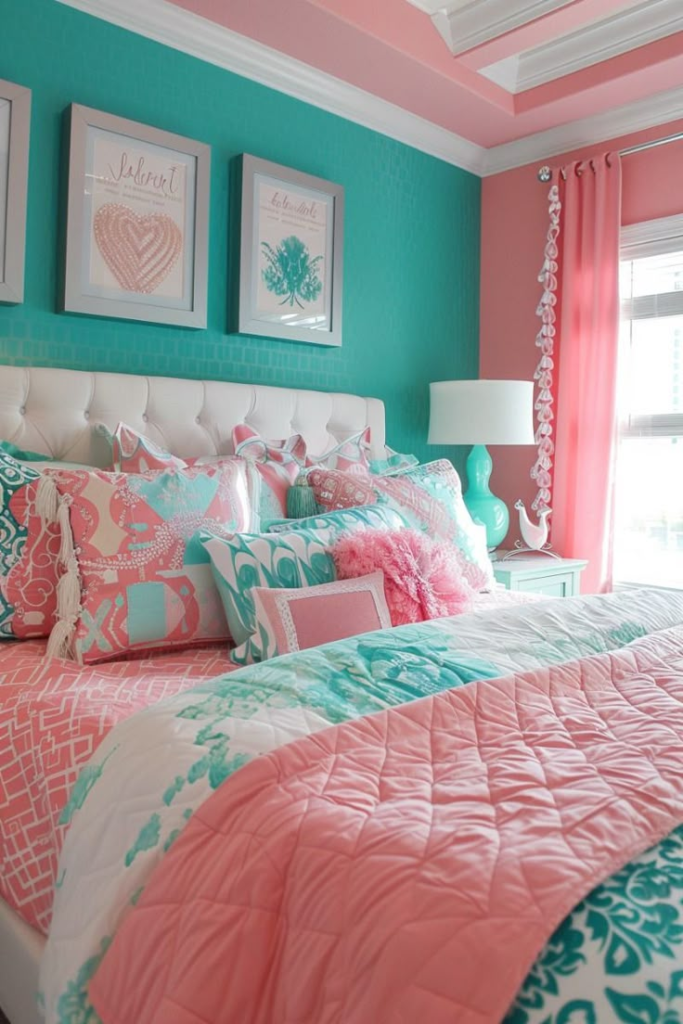 Playful and vibrant, aqua and coral give off a fun, beach-inspired feel. Use them in pillows, throws, or small decor pieces for a lively yet balanced dorm room.