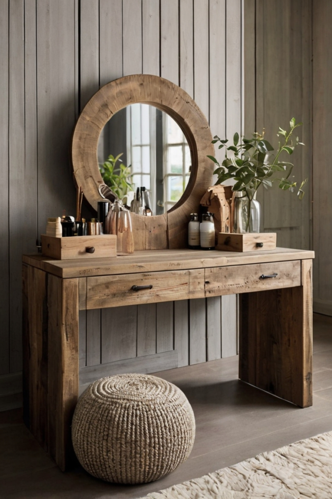 A rustic dressing table is perfect for anyone drawn to earthy, organic textures. Often made with reclaimed or intentionally weathered wood, these pieces bring depth, character, and a lived-in warmth to the bedroom.