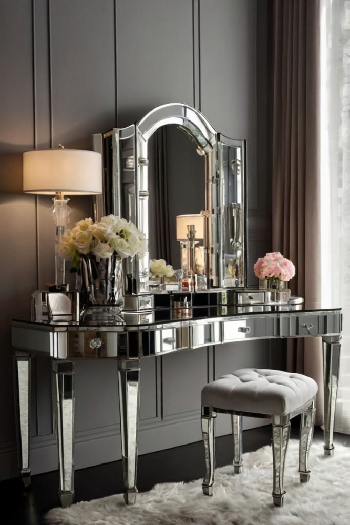This glamorous style blends perfectly with modern or glitzy interiors, adding a dazzling touch that transforms your vanity area into a chic focal point.