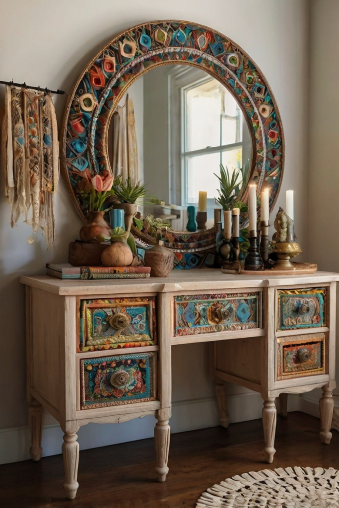 Add handmade décor or mismatched accents to make the space feel personal and expressive—no two Boho vanities ever look the same.