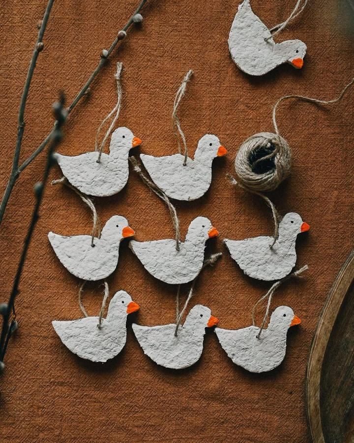 Textured paper bird ornaments bring a quiet elegance to Easter décor. Their simplicity allows the material itself to shine, creating a soft, handmade look.