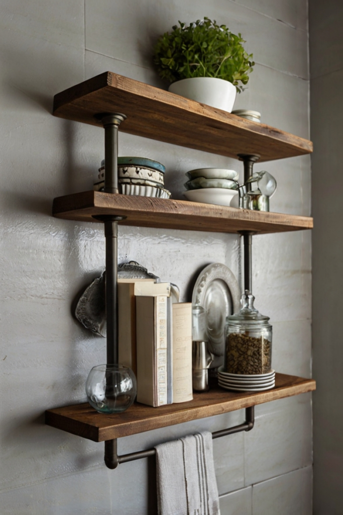 Use them to display cookbooks, small plants, vases, or neatly organized spices. Reclaimed wood provides a warm, rustic aesthetic, while metal or glass shelves suit contemporary spaces.