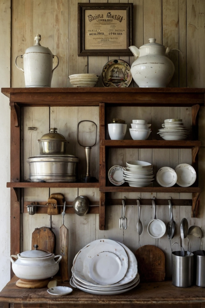 Vintage signs, old advertisements, and antique kitchen tools add character and nostalgic charm to kitchen walls. These items can often be found in antique stores, flea markets, or online marketplaces.