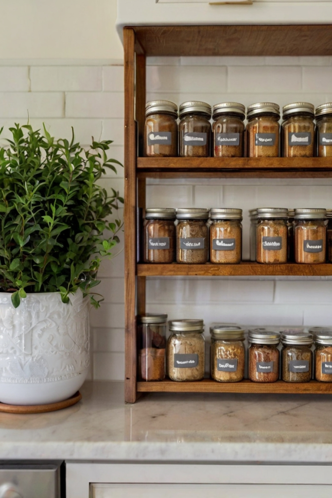 Label jars clearly and organize them in a way that fits your kitchen’s style. This setup declutters countertops and streamlines meal prep.