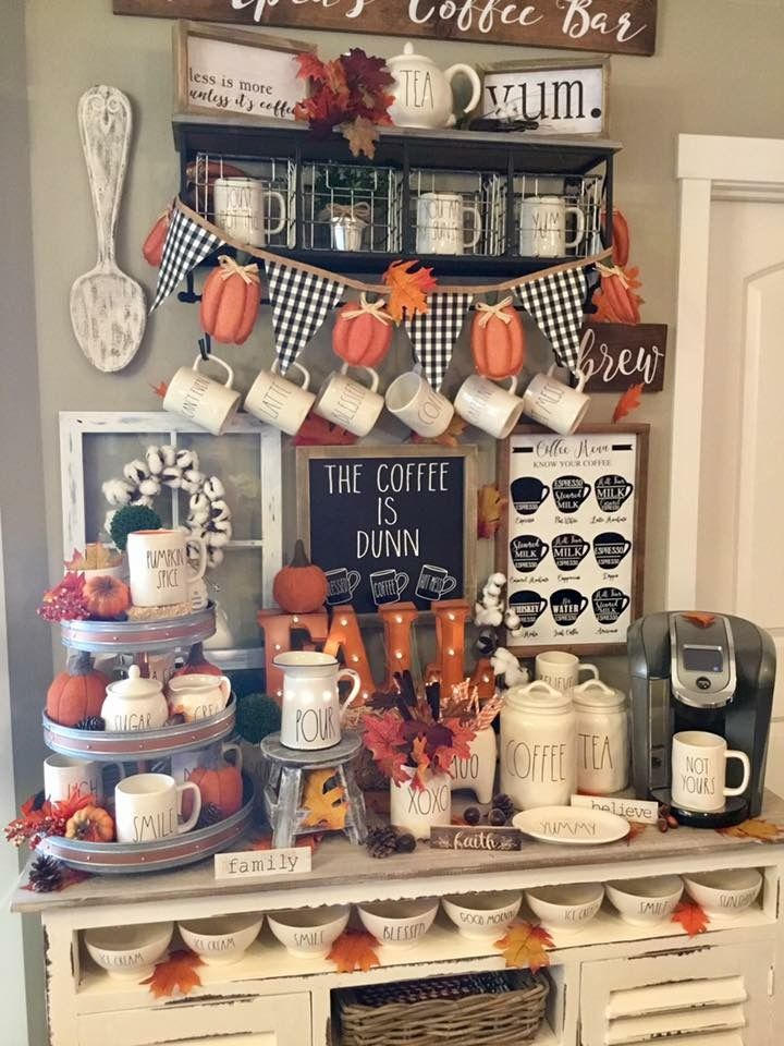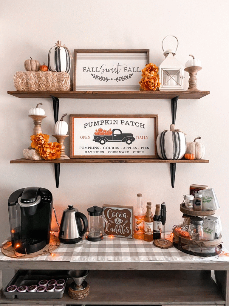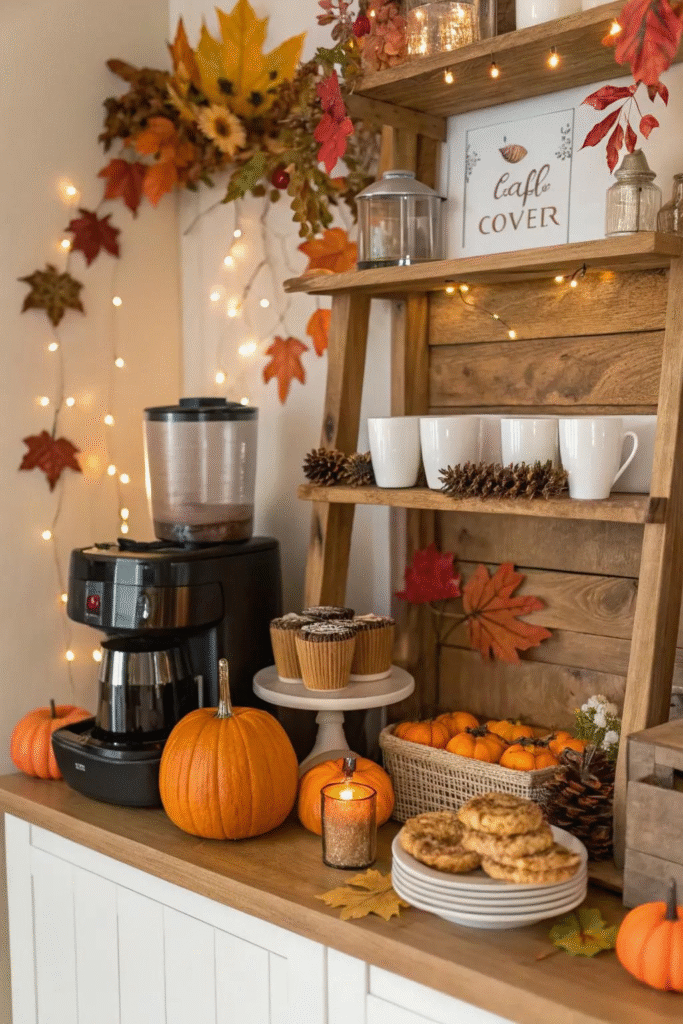 If you prefer sophistication, a classy coffee bar is a perfect choice. Incorporate neutral tones, elegant glassware, and sleek storage solutions. This style feels polished and timeless while still reflecting the autumn season.