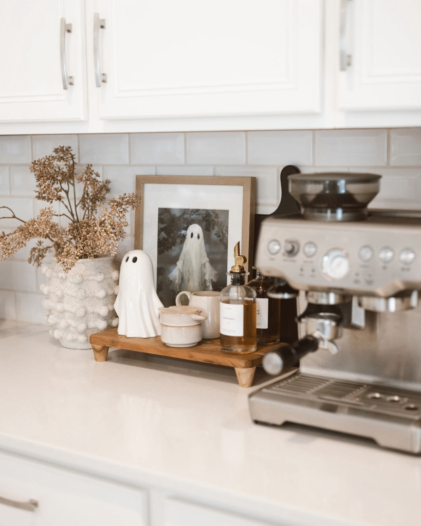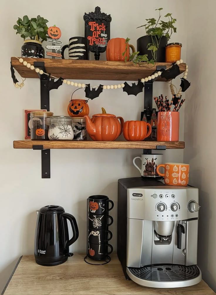Bring Halloween fun into your coffee corner with a ghost-inspired setup. Add ghost mugs, themed decorations, or playful signage to capture the spirit of the season. It’s festive, lighthearted, and sure to make your coffee ritual even more enjoyable.