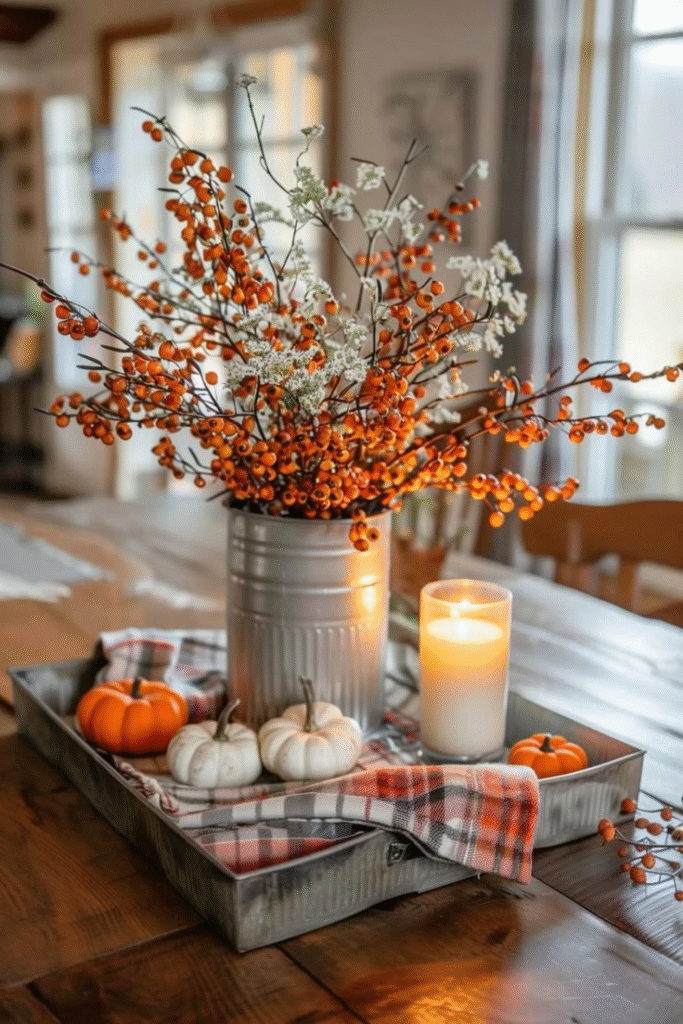 If you want a playful yet polished setup, charming décor is the way to go. Add whimsical touches—like decorative pumpkins or patterned trays—that bring personality to the table while keeping it seasonal.