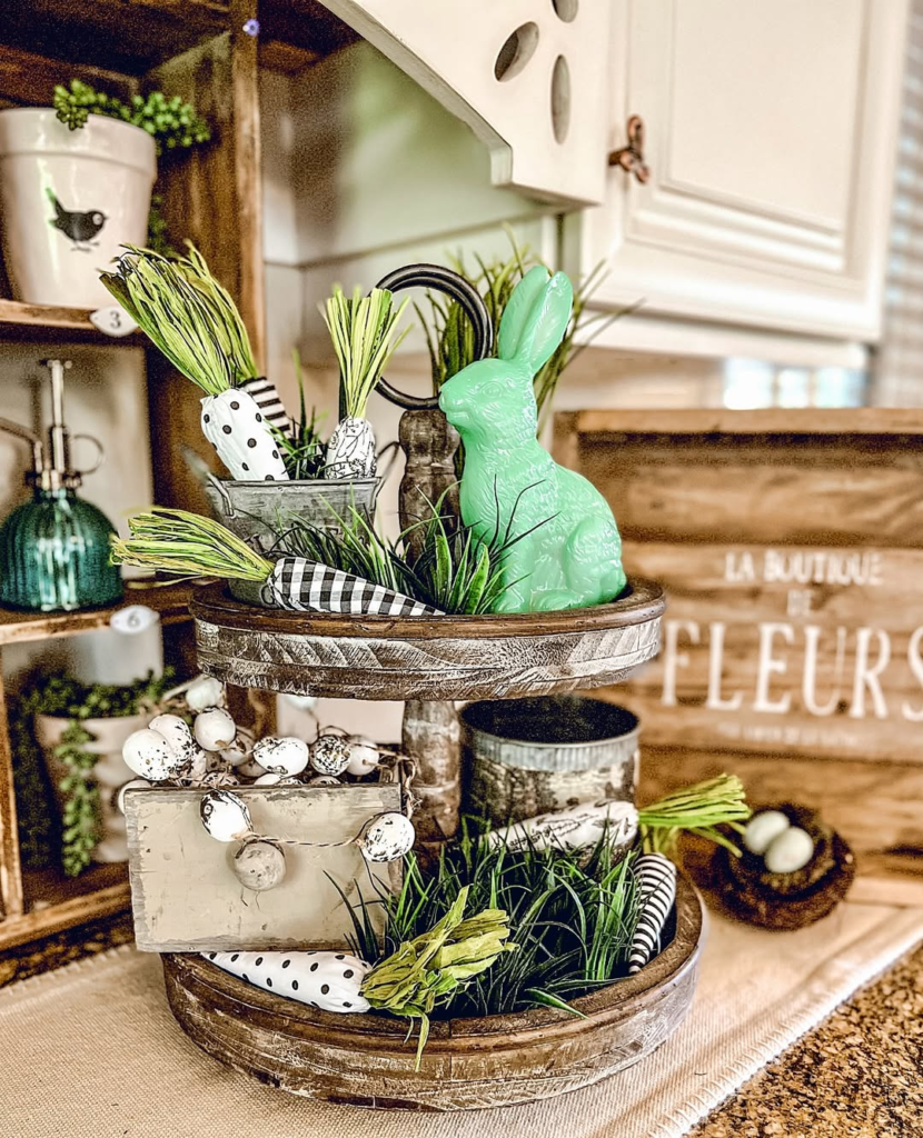 This versatile setup works equally well for Easter brunch or everyday kitchen styling, offering a whimsical yet sophisticated focal point.